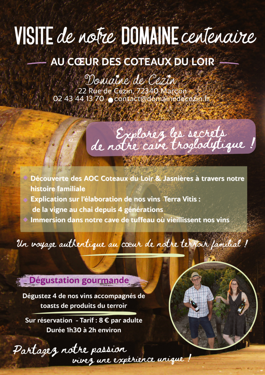 Amandine et Xavier vous accueillent toute l’année au Domaine et vous invitent à déguster nos vins AOC Coteaux du Loir et Jasnières.